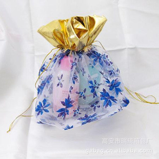 廠家專業(yè)生產(chǎn)時尚珍珠紗禮品袋 束口袋 燙金/銀袋 雪紡紗 珠寶包