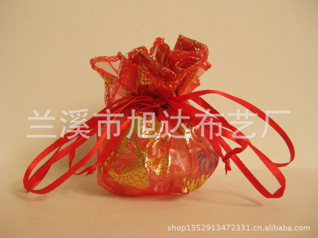 9.其他可供選擇的各種精致禮品裝飾袋有:色丁布袋、絨布袋、金蔥布袋、網(wǎng)布袋、棉布袋、麻布袋、PVC袋、環(huán)保購物袋、化妝袋、燙畫袋、燙鉆袋等。