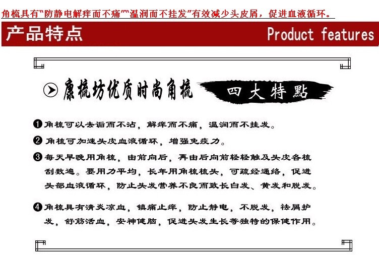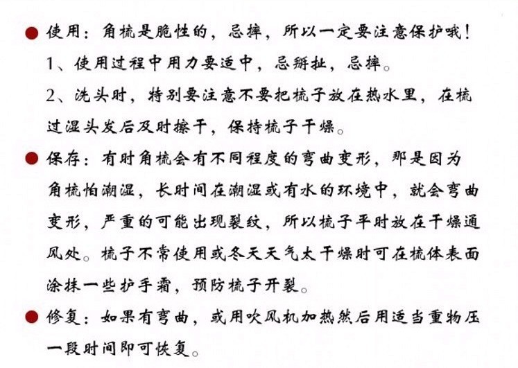 【產(chǎn)品介紹】牛角梳頭能在按[mo]大腦頭皮和頭部神經(jīng)時促進(jìn)血液循環(huán),無形中滲入人體,經(jīng)常使用角梳能有效的減少脫發(fā),斷發(fā)及消除頭皮屑,頭部是人體的統(tǒng)帥,一定要用的方式去護(hù)理。