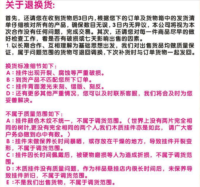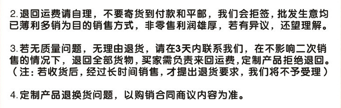 因為物流導(dǎo)致貨物破損,需要退換貨的買家要自己承擔(dān)運費!簽收前請當(dāng)面點清再收貨!