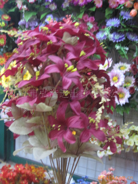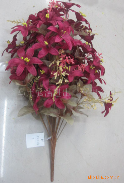 仿真植物 塑料百合花 18叉(54頭)百合花 多色 外貿(mào)、批發(fā)