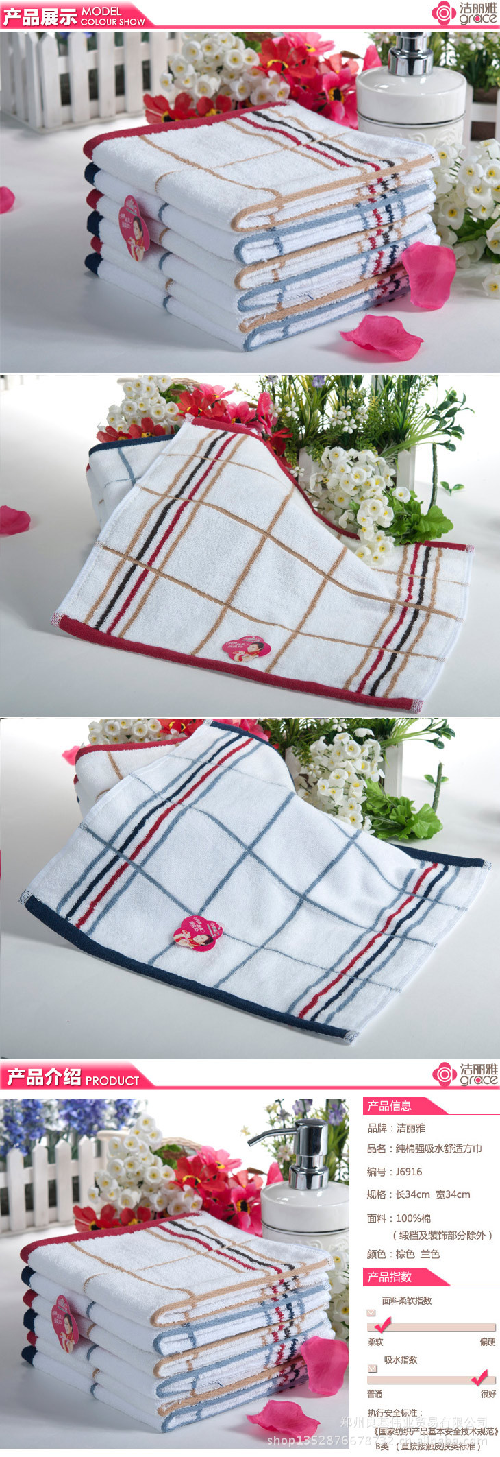 潔麗雅6916純棉方巾 方格強(qiáng)吸水舒適方巾【招商加盟 一件代發(fā)】