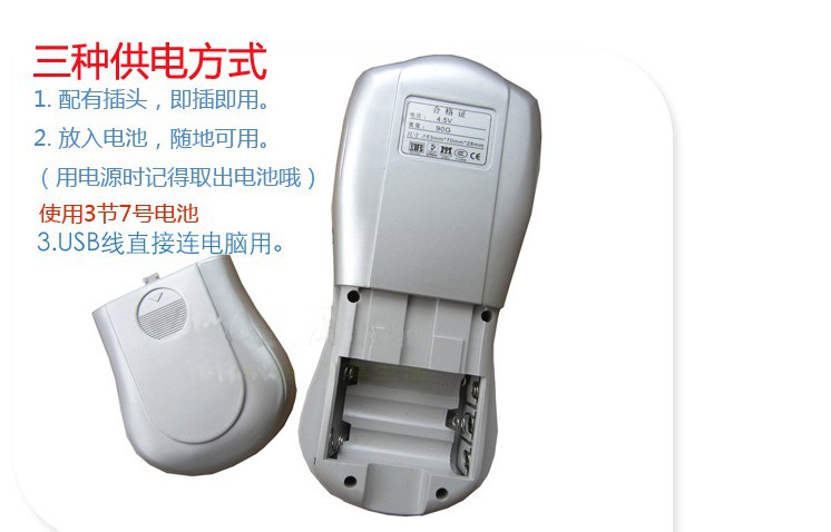● 裝入電池:將電池蓋輕輕地拉開(kāi),再將7號(hào)電池3節(jié)按照正負(fù)極位置裝入。