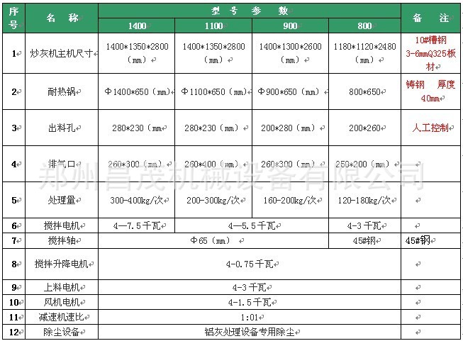 鋁灰炒灰機(jī)技術(shù)參數(shù):