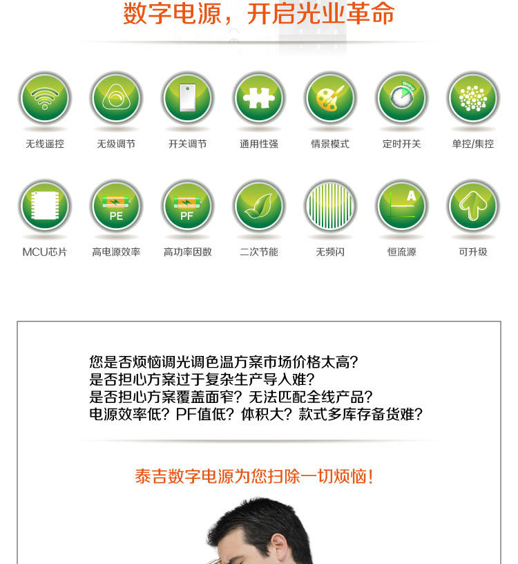 智能燈具、普通價(jià)格:產(chǎn)品高功率因數(shù)、高效率,無(wú)頻閃方案,智能的功能,普通的價(jià)格。
