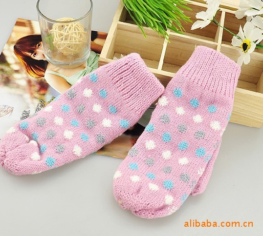 韓版加厚可愛點(diǎn)點(diǎn)果凍手套 點(diǎn)點(diǎn)女生手套 加絨保暖手套 手套批發(fā)