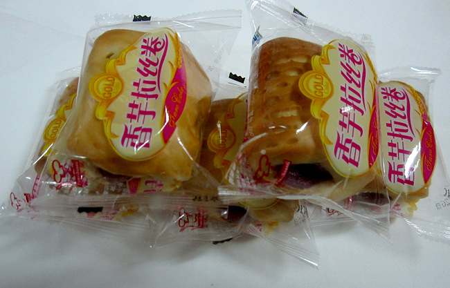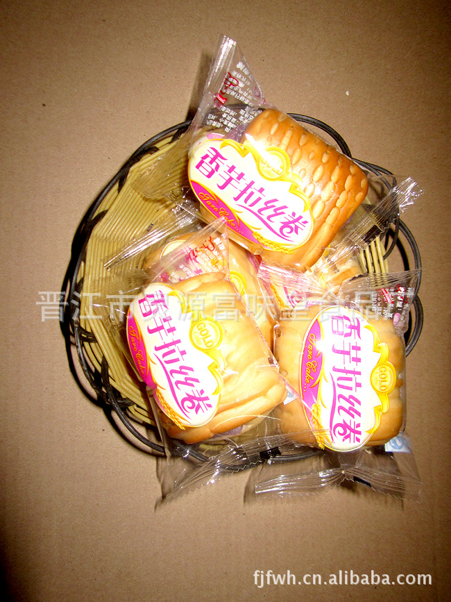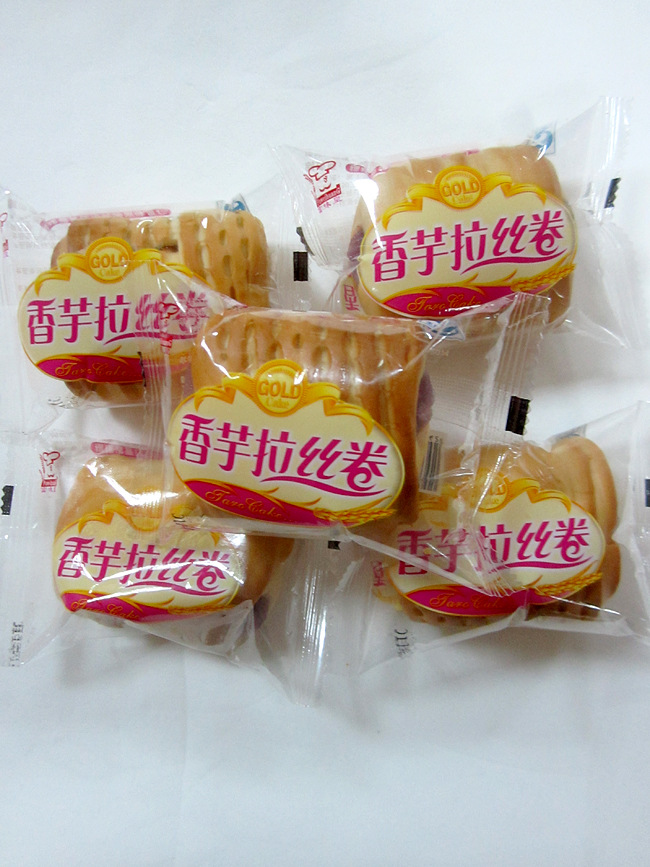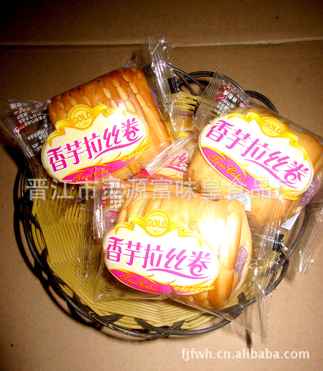 廠家直銷美味的點(diǎn)心 獨(dú)立包裝拉絲面包 香芋味夾層面包