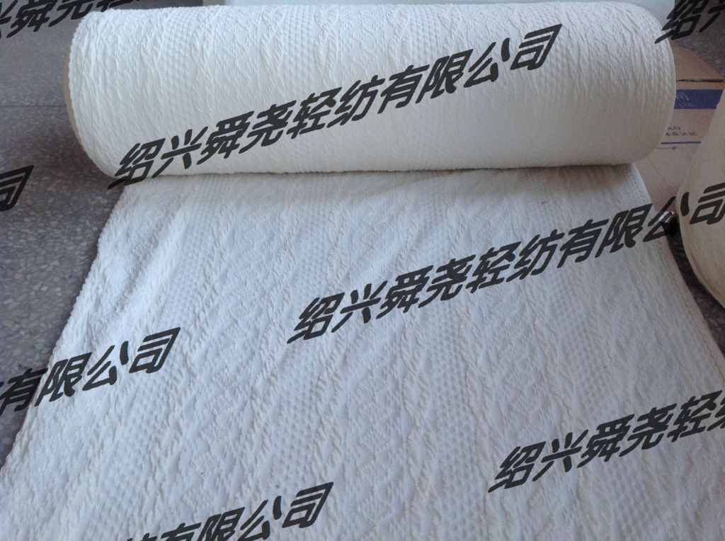 提花面料----面料上的花紋是織出來的,不是普通印花 ,也不是繡花 。 面料織造時(shí)用經(jīng)緯組織變化形成花案,紗支精細(xì),其針線密度高,使用起來不變形,不易褪色,舒適感好。 目前提花在市場(chǎng)上很受歡迎。