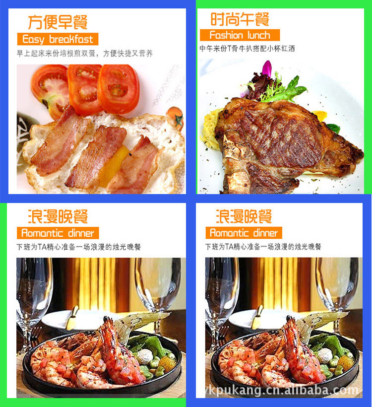 6.適用于加工各種燒烤、烙、煎的食品,如大餅、餡餅、發(fā)面餅、鍋貼、玉米餅、烤肉、煎魚(yú)、油燜大蝦等