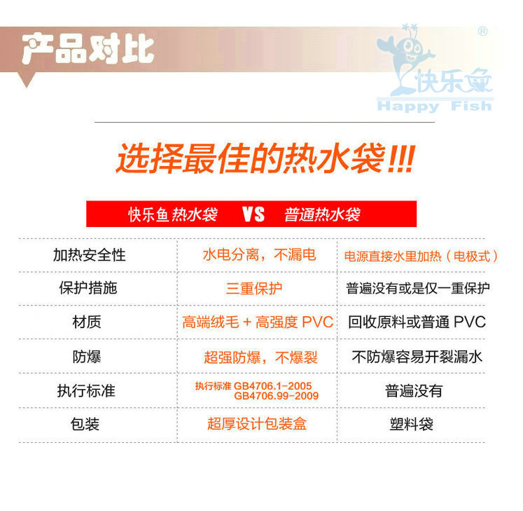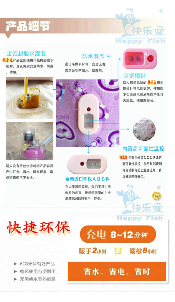 商品名稱:快樂魚正品防爆/雙插手 卡通毛絨充電熱水袋 暖手寶 已注水