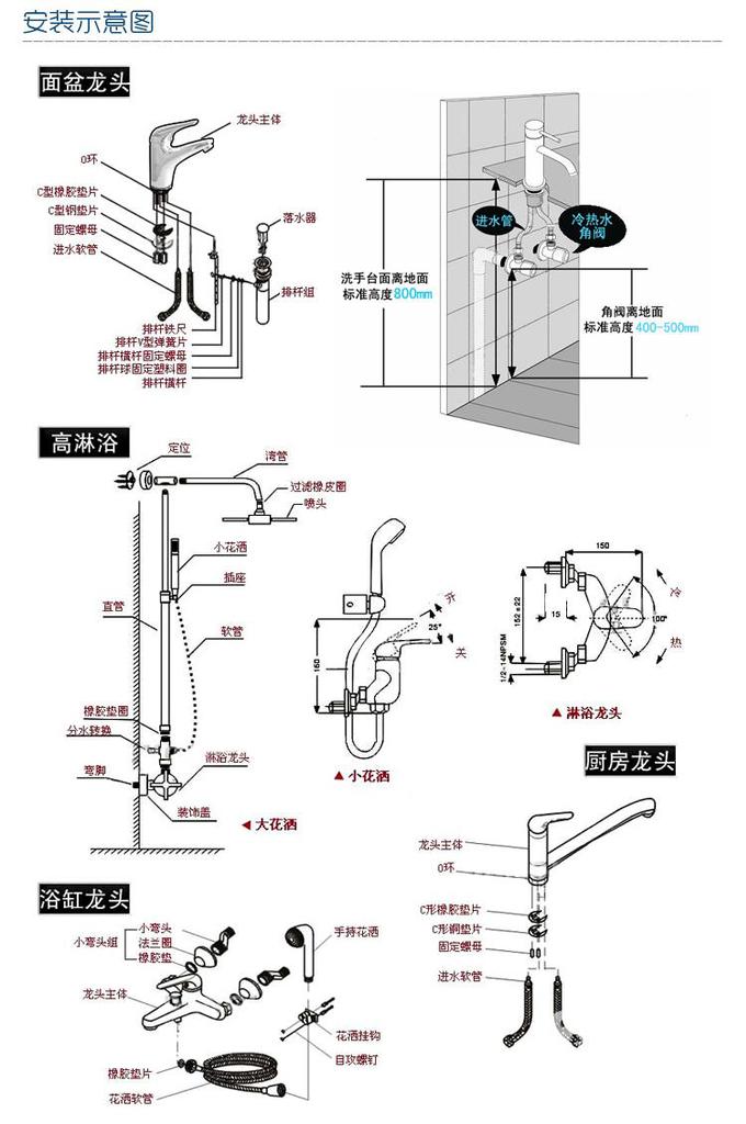 5.為保護(hù)水龍頭光潔明亮,請(qǐng)使用后用溫和中性的清潔劑清洗表面的污垢,切勿用酸堿性清潔劑、粗糙劑、紗布和肥皂等。
