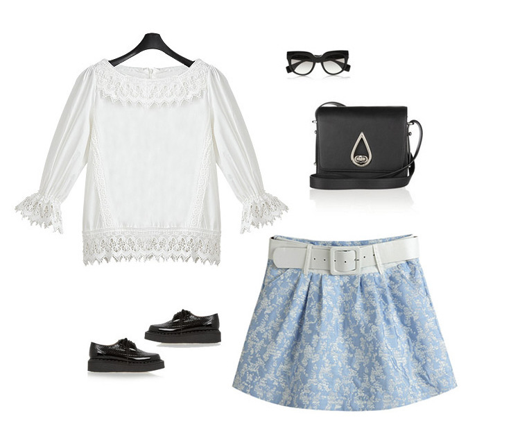 ¥69.00歐洲站2015春新款時尚兩件套蕾絲衫加印花短裙修身套裝6280