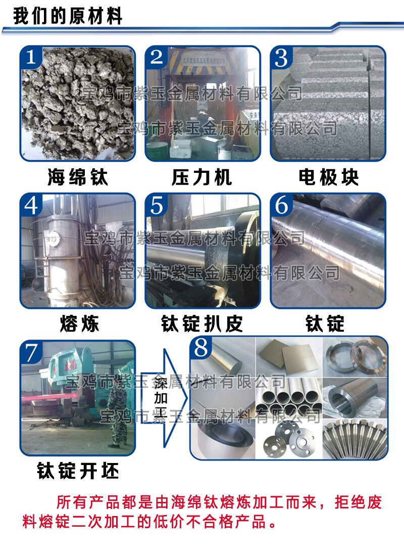 寶雞市紫玉金屬材料有限公司是一家集鈦環(huán)、鈦棒、鈦管、鈦絲、鈦合金及多種有色金屬材料加工、生產、銷售為一體的綜合性技術企業(yè)。坐落于陜西省寶雞市,毗鄰享有中國鈦城之稱的寶鈦集團。產品廣泛應用于石油、化工、航海、航天、體育制品、醫(yī)療器械、電鍍等行業(yè)。