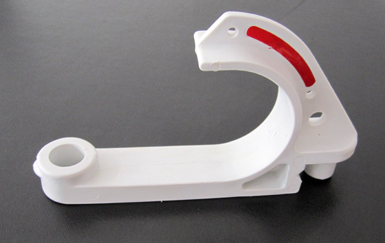 電纜掛鉤電纜掛鉤以PVC為原料,添加ACR、DOP、抗靜電劑、氯化石蠟等輔料,經(jīng)高速攪拌機(jī)加溫、混合、注塑機(jī)注塑而制成。