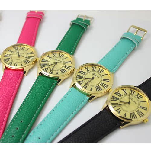 新款日內瓦geneva女士手表玫瑰金時裝表 時尚大表盤歐美流行女表NEW7.50立即購買