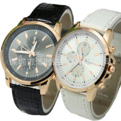2015新款geneva日內瓦假三眼手表外貿熱賣款美流行皮帶手表玫瑰金NEW6.00立即購買