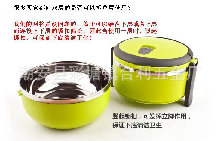 圓形雙層飯盒 不銹鋼內膽 PP材料外層 保溫密封型 防滲漏