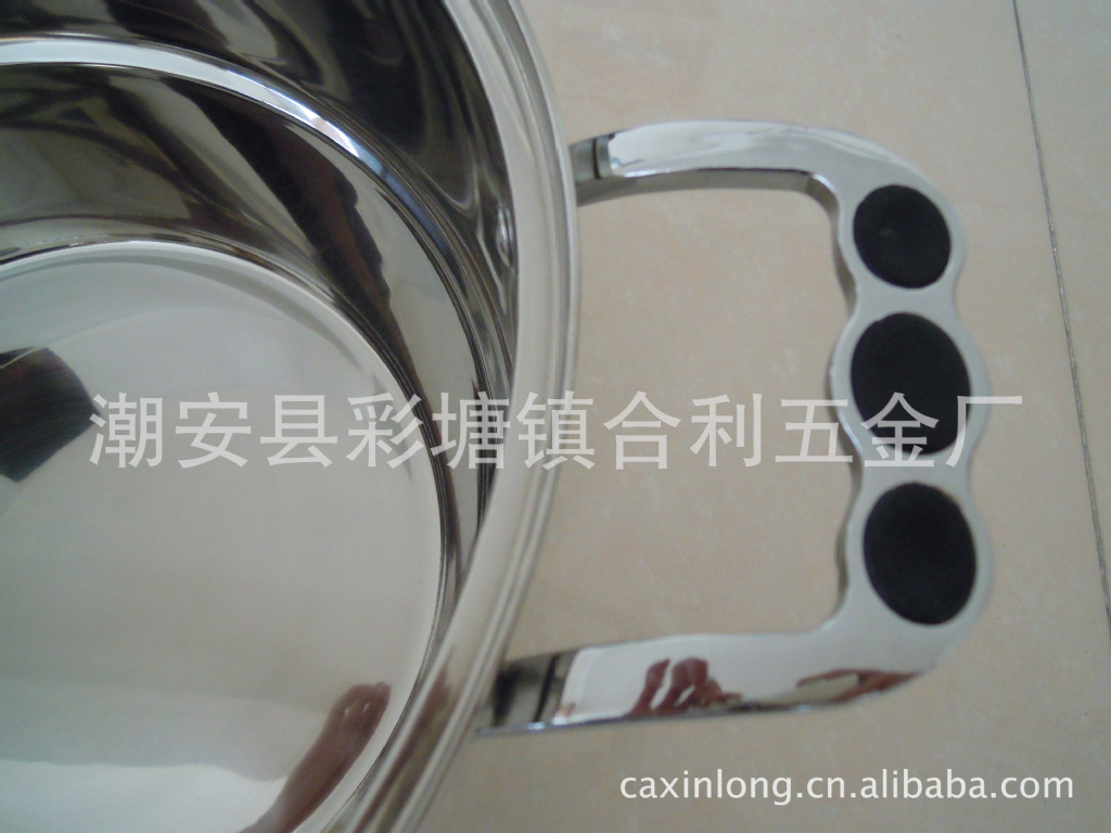 彩塘鎮(zhèn)合利五金廠是一家集產(chǎn)品開發(fā)、生產(chǎn)、銷售于一體,經(jīng)國家相關(guān)部門批準(zhǔn)注冊的規(guī)模企業(yè)。專業(yè)從事不銹鋼產(chǎn)品的生產(chǎn)和開發(fā),專業(yè)生產(chǎn)不銹鋼餐具,湯勺,湯盆,湯盤,餐盤,蒸飯盤,方盤, 廚盆,電熱鍋,電熱杯,電熱壺,口杯,保溫杯,湯桶,衛(wèi)生桶,提鍋,奶鍋,廚具系列,餐具系列,酒店用品系列,裝飾配件系列,衛(wèi)浴系列等等。