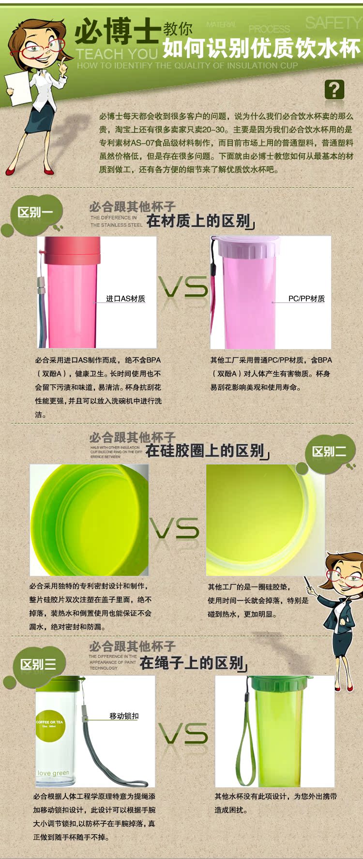 杯身:采用專利塑材AS-07食品級材料制作,健康安全