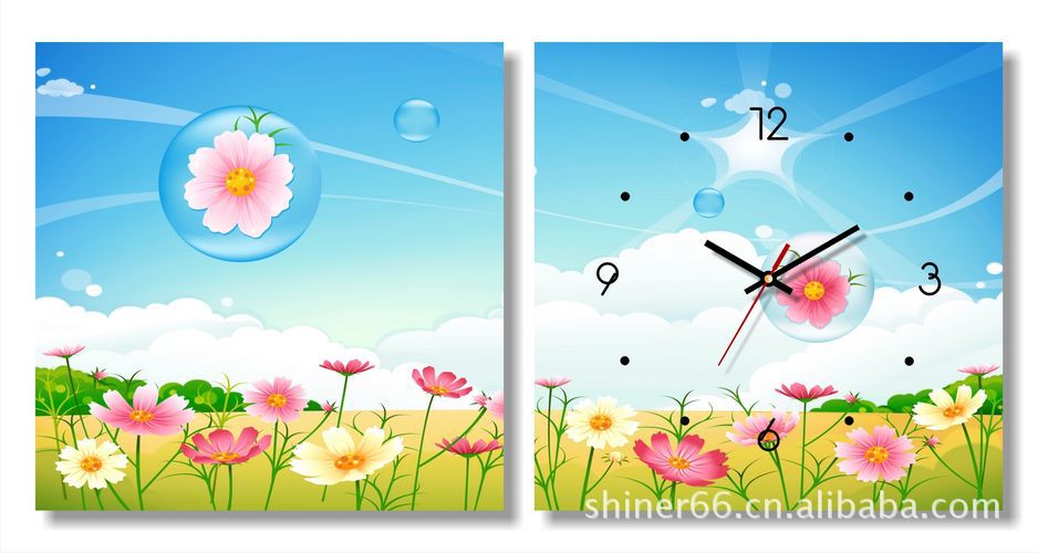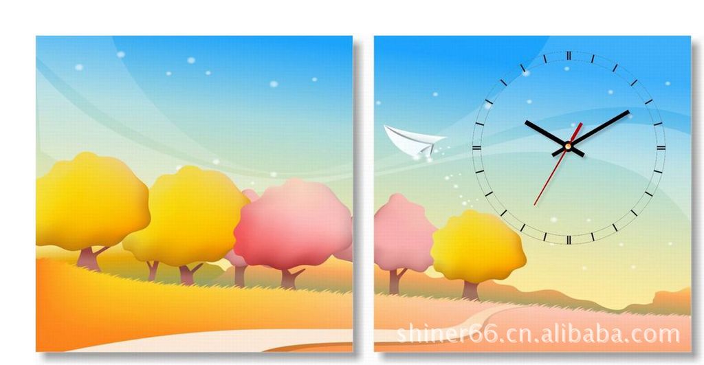 兩聯(lián)無(wú)框畫/墻壁掛鐘/時(shí)尚家居裝飾畫鐘