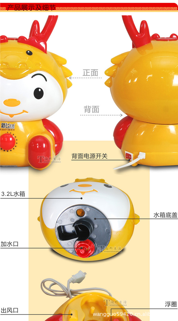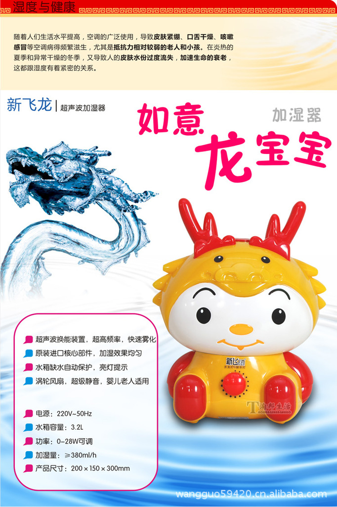 龍年禮品 新款 新飛龍寶寶家用加濕器 超聲波 帶彩燈批發(fā)