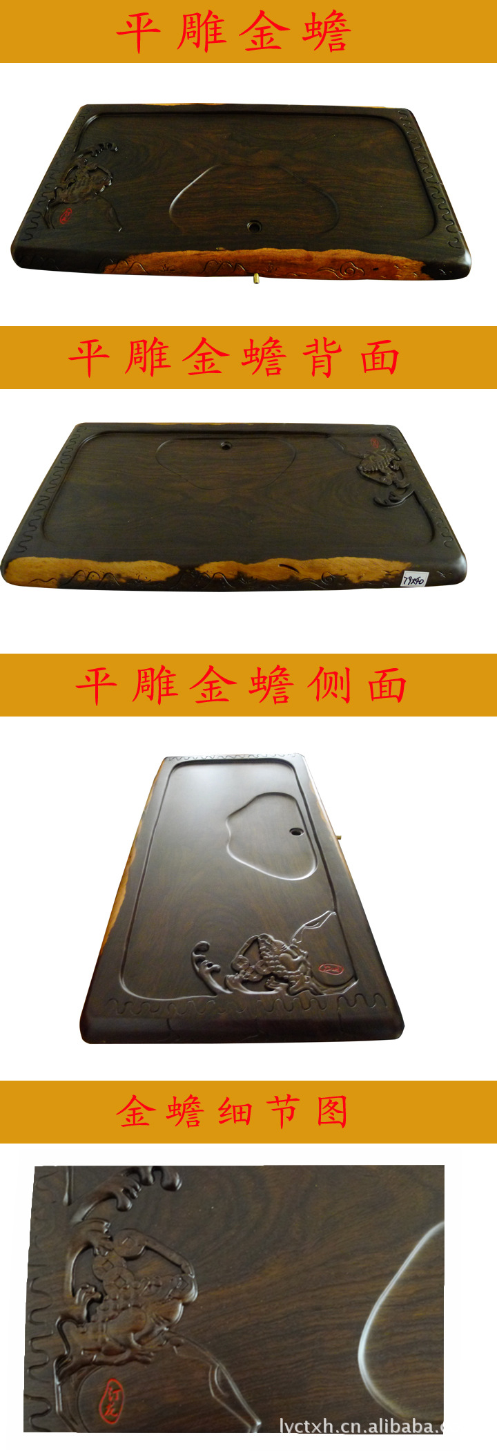 平雕黑檀;黑檀木茶盤,淺色部分為檀木樹皮部分,茶盤木紋紋理清晰,手感細膩。這款黑檀平雕;黑檀木茶盤低廉,結(jié)構(gòu)緬而勻,耐腐、耐久性強、材質(zhì)硬重、細膩,是一種十分稀少的珍貴茶盤。