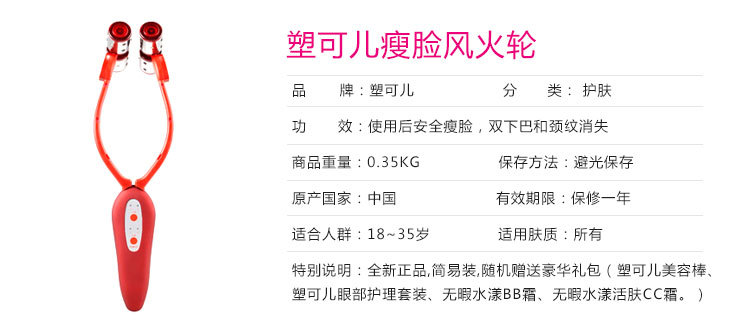 配置: 禮盒套裝 (瘦臉風(fēng)火輪、贈(zèng)品美顏棒、眼霜2盒)