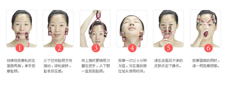 每天使用2-3次,每次9分鐘,可以單手使用瘦臉風(fēng)火輪在臉部從太陽穴一直到下巴部位來回滾動(dòng),也可以針對額頭部位的皺紋和頸部的皮膚按[mo]。如果想要效果更顯著,可以增加使用次數(shù)。