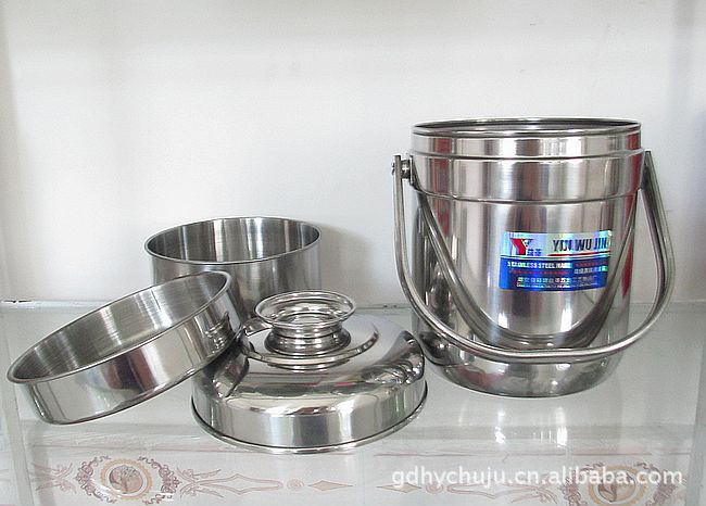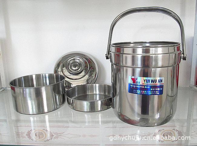 5.這是一款簡單實惠的不銹鋼提鍋,產(chǎn)品使用的是單層不銹鋼制作而成的,可以滿足30分鐘內(nèi)的保溫時間,非常適合送餐使用,是個簡單好用又實用的飯桶哦,有兩個食格配備,可以組合成三層使用。外表使用拋光處理,不易玷污哦。