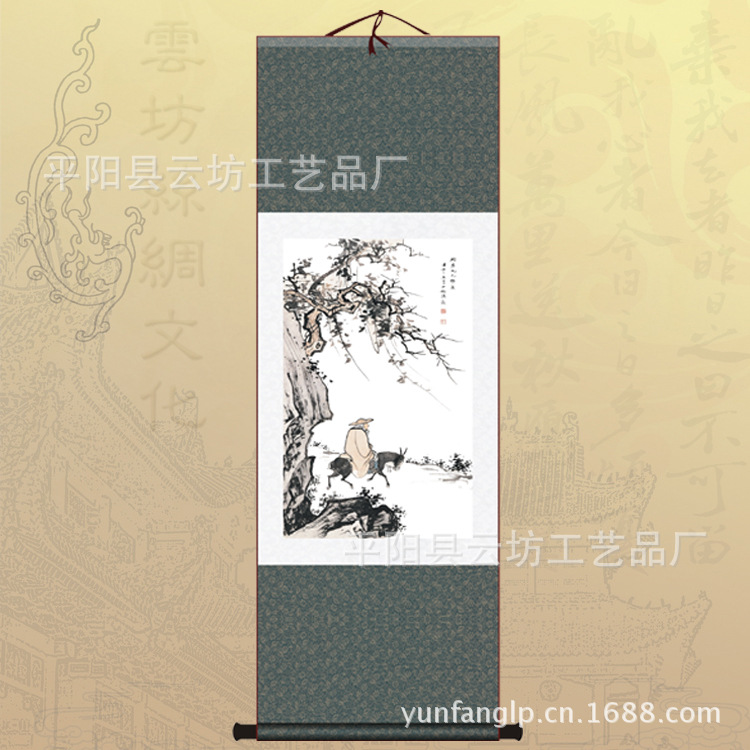 廠家直銷 供應(yīng)絲綢畫 國畫 復(fù)制畫 卷軸畫 馿背尋詩