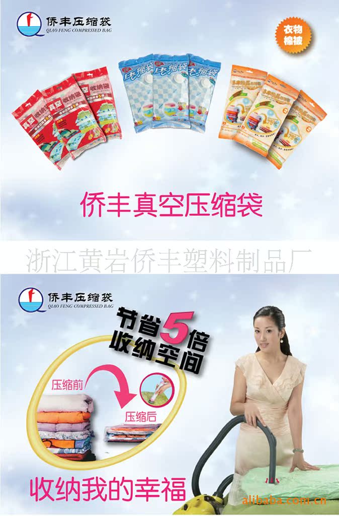 僑豐真空壓縮袋,9絲精品裝(也稱加厚版),高檔PE PA復(fù)合,可使用多年,無論在厚度上、柔韌性上、反復(fù)使用時間上,都是其他品牌的同類壓縮袋所無法比擬的。
