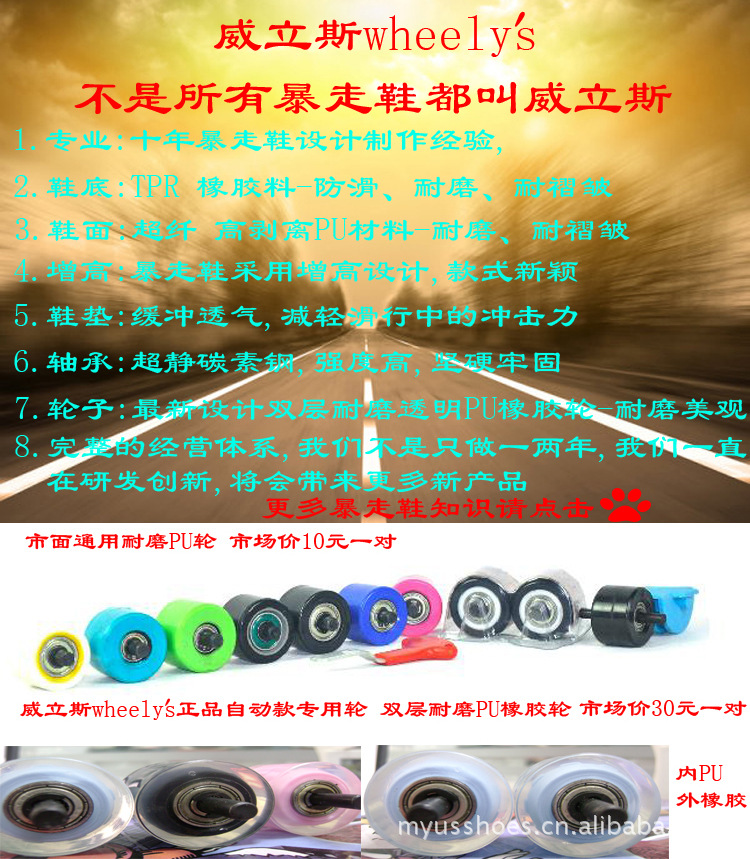 3.設(shè)計(jì)專業(yè)--零四年開始研發(fā)暴走鞋至今,設(shè)計(jì)款式多樣,潮流、前衛(wèi)、時(shí)尚