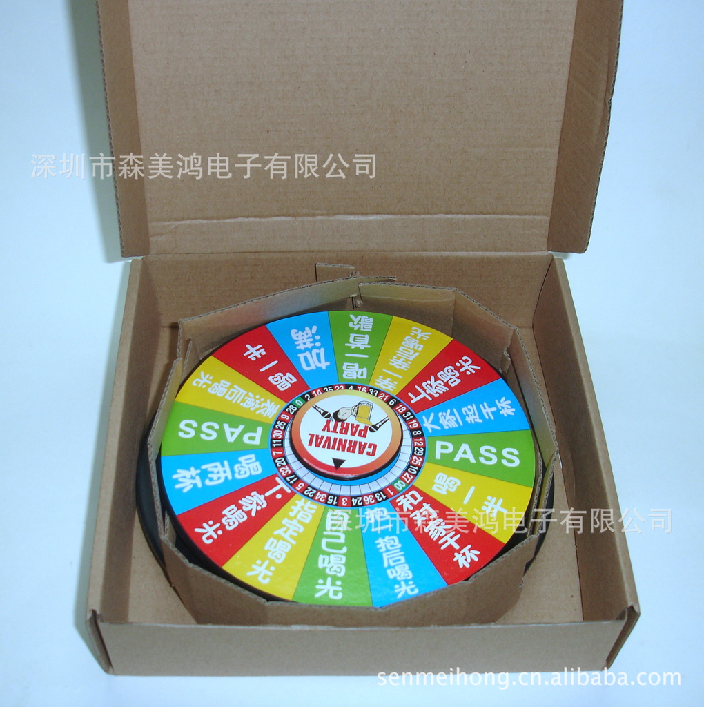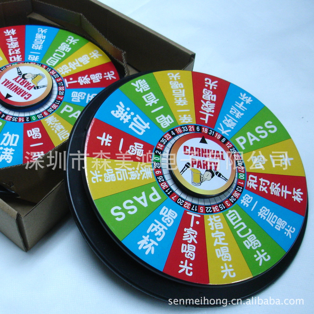 底盤上有指示箭頭,當(dāng)您轉(zhuǎn)動上面印有酒令內(nèi)容的圓盤停下后,??吭谥甘炯^區(qū)域的,您就該按指示完成指令。新奇有趣,是喝酒朋友的,酒水行業(yè)促銷禮品的。