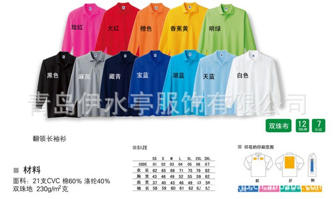 本公司的長(zhǎng)袖翻領(lǐng)polo衫 主要規(guī)格有: