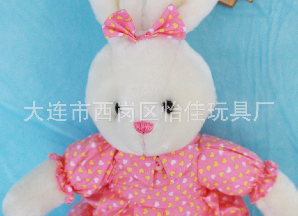楠楠兔--兔年新作系列之一。這個(gè)楠楠兔選用的可是高檔的腈綸長(zhǎng)毛絨材料,這種材料科比一般的滌綸玩具面料貴多了。衣服是用純棉花布“貢緞棉”制作的。白白的衣服穿上花衣服,漂不漂亮?你說(shuō)呢! 另外別忘記了,這種楠楠兔還有一個(gè)小號(hào)的,喜歡的聯(lián)系呀。