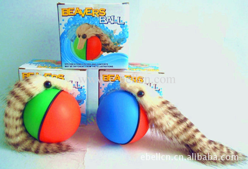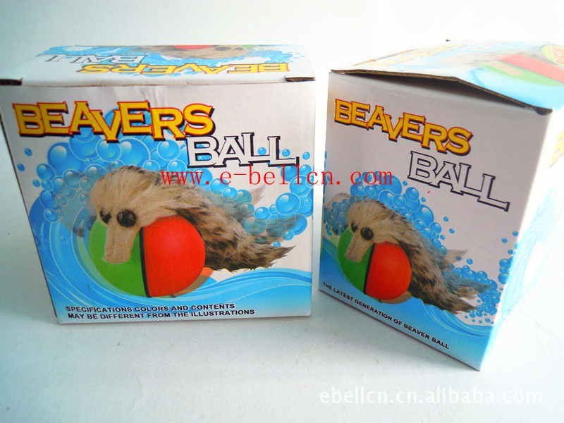適合水里玩;材料:ABS;顏色:藍(lán)紅/綠紅;球尺寸:8*8cm,海貍尺寸:21*6cm,彩盒尺寸:11*8*10cm