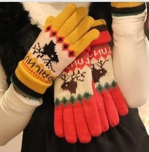 冬季新品 可愛小鹿雙層加厚保暖加長 五指分指男女情侶手套 批發(fā)