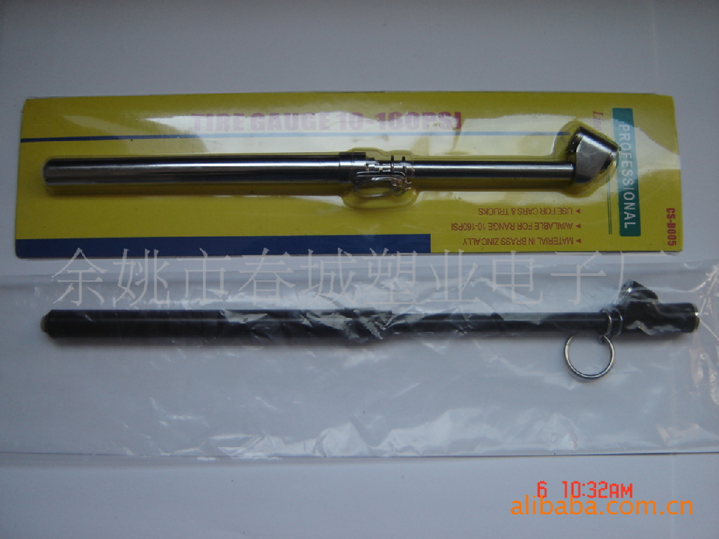 胎壓計(jì)用于測(cè)量汽車輪胎氣壓,產(chǎn)品為鋅合金頭,筆桿為不銹鋼管或鋁管,表面電鍍鉻,
