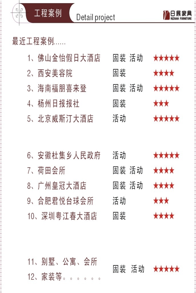 ⑤成品安裝:工廠具有完善服務,配備專人上門跟進安裝,使意念與實際統(tǒng)一,以便讓酒店工程運到完美無瑕。