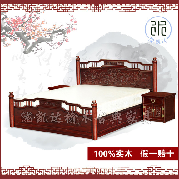瀧凱達(dá)榆木家具 實(shí)木家具仿古明清家具中式古典家具圓柱床三件套