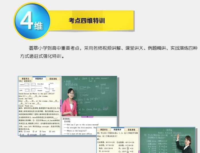 薈萃小學(xué)到高中重要考點(diǎn),采用名師視頻講解、課堂講義、例題精講、實(shí)戰(zhàn)演練四種方式遞進(jìn)式強(qiáng)化特訓(xùn)。