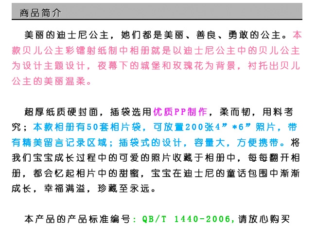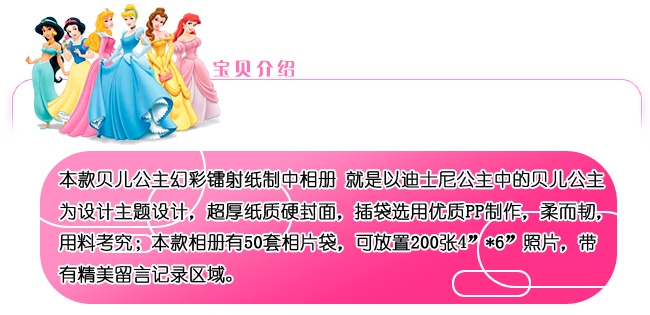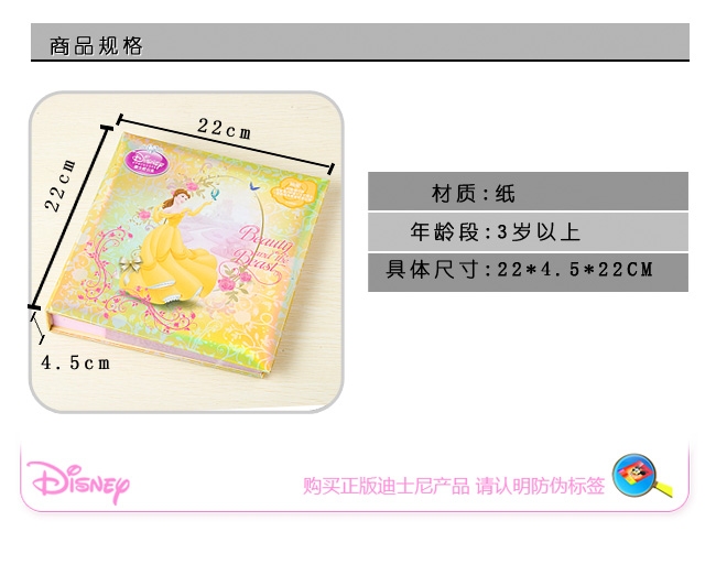 正品迪士尼 貝兒公主幻彩鐳射紙制中相冊(cè) 相簿