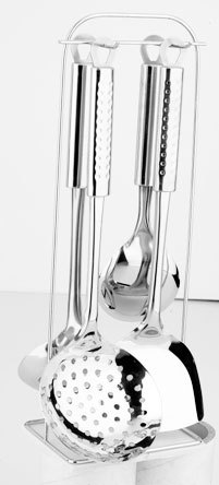 炒菜鏟、飯鏟、湯勺、漏勺、懸掛架共5件裝