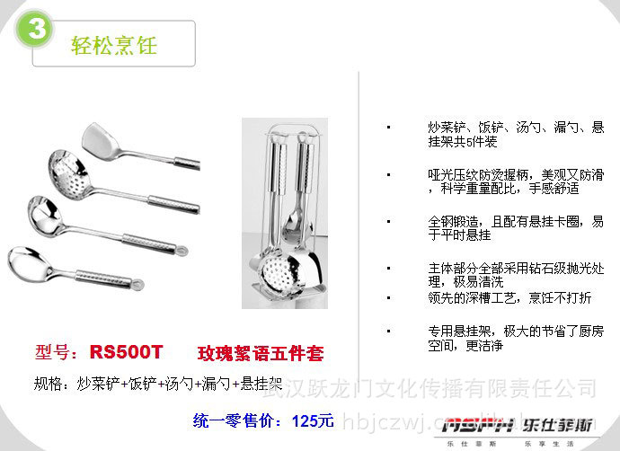 1、五件:架子、鍋鏟、湯勺、漏勺、飯鏟,功用不重復(fù);