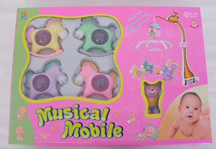 此款床鈴有4只小馬公仔和一個跳傘小熊,電動音樂小屋發(fā)出三首樂曲,能轉(zhuǎn)動,同時音樂小屋子還會擺動并發(fā)光,是款性價比及高的嬰兒玩具,請家長要求不要過高哦,挑剔者請慎拍!