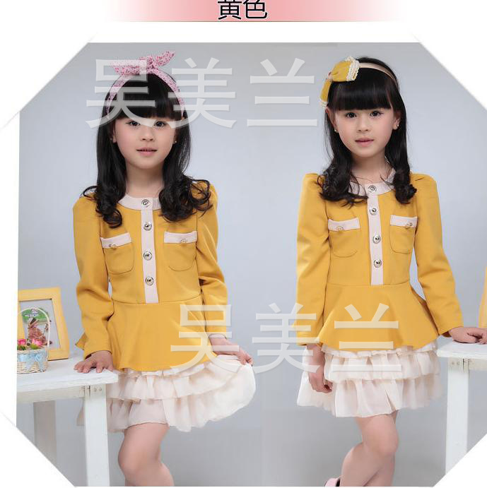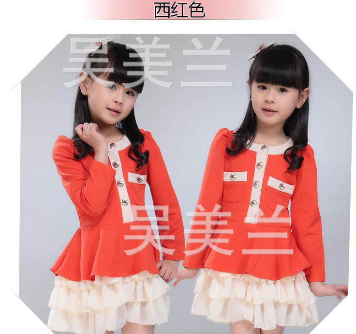 工廠直銷 長袖雪紡復古裙 童裝女童 小泡泡袖 荷葉邊蛋糕連衣裙