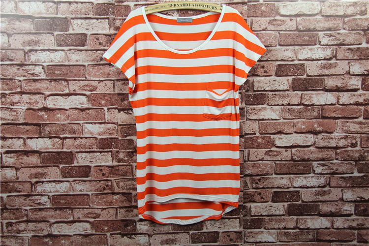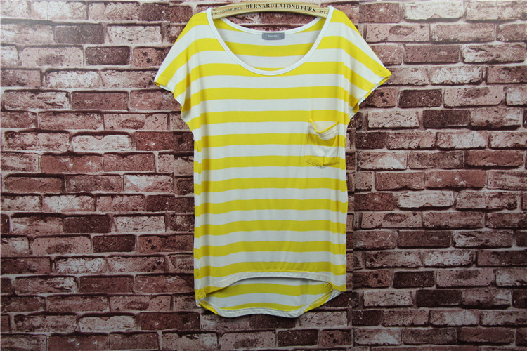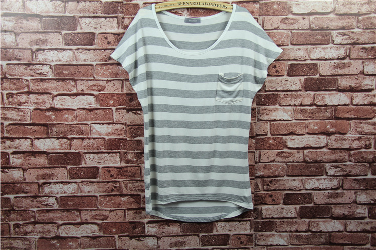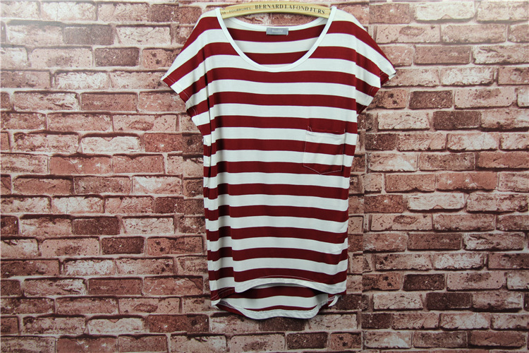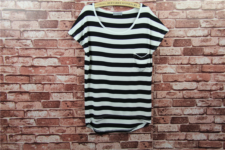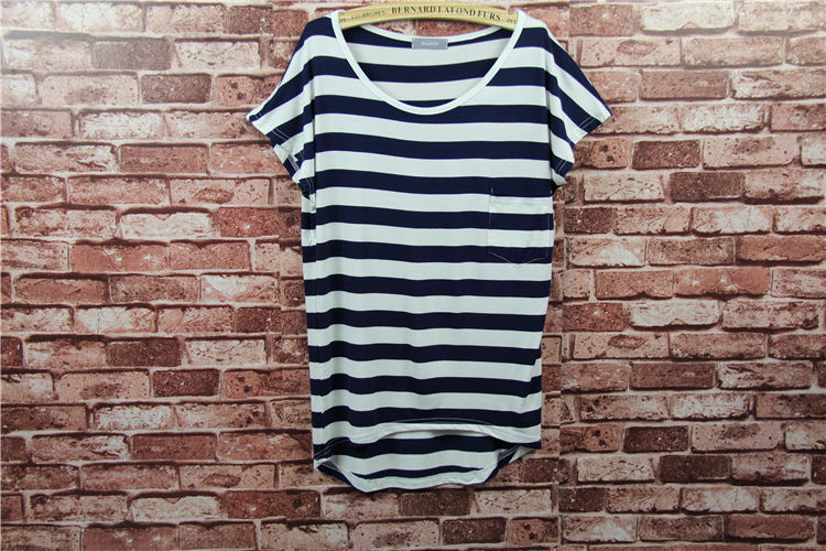 春季新款韓版女裝 淘寶爆款不規(guī)則顯瘦條紋 復(fù)古莫代爾修身打底衫