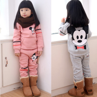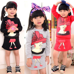 韓版新款冬裝高跟鞋圖案兩件套女童套裙抓絨加絨 童套裝廠家批發(fā)