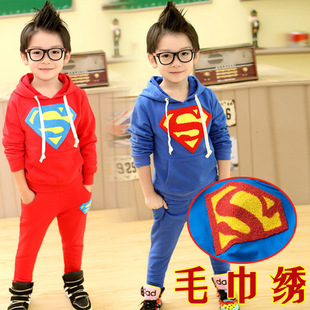 韓版童裝秋裝新款批發(fā) 超人中小童褲套裝 純棉兒童衛(wèi)衣套裝