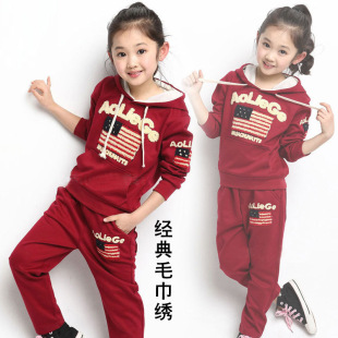 爆款 2014秋季童裝 純棉男童女童套裝 毛巾繡韓版兒童套裝 童套裝